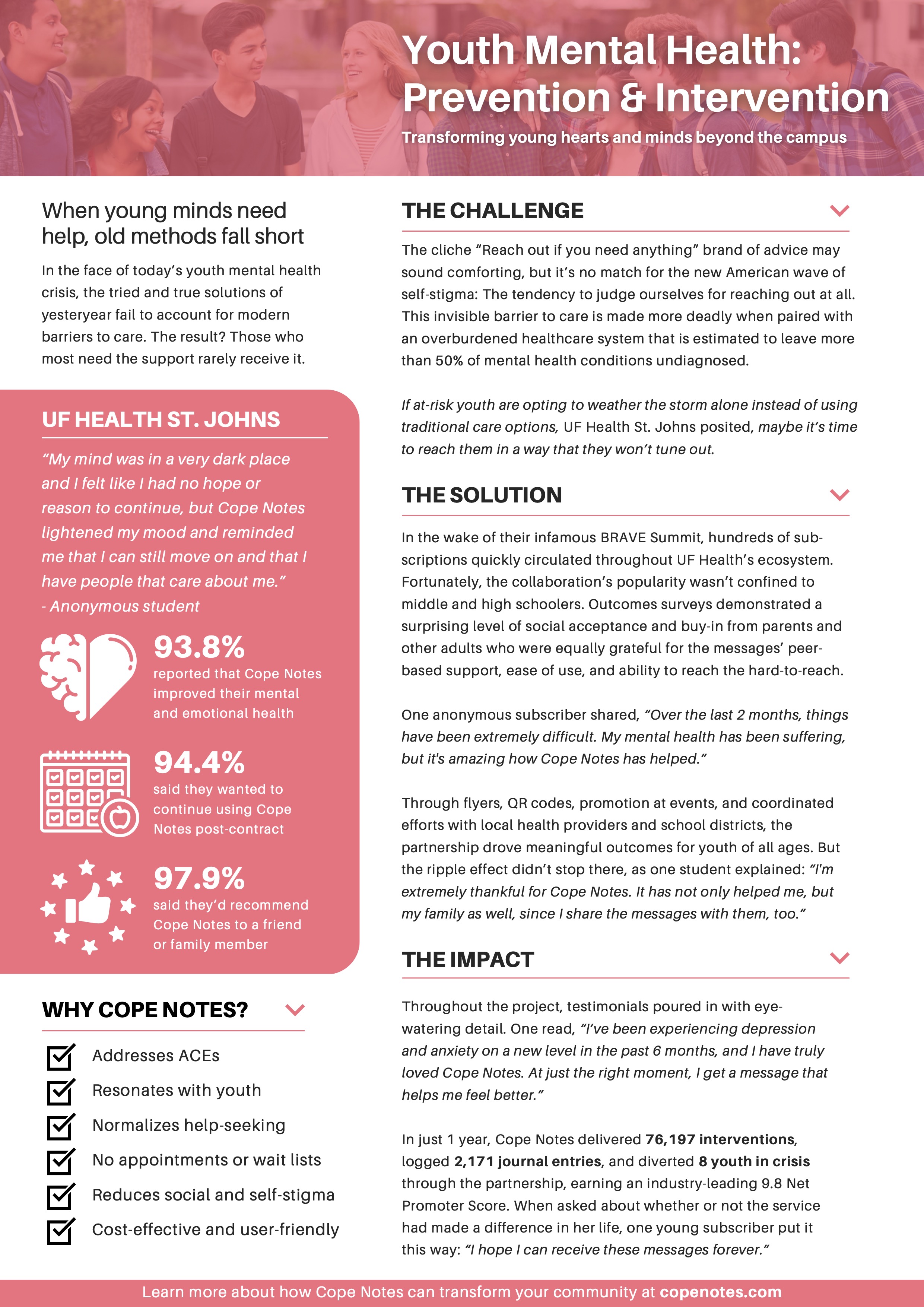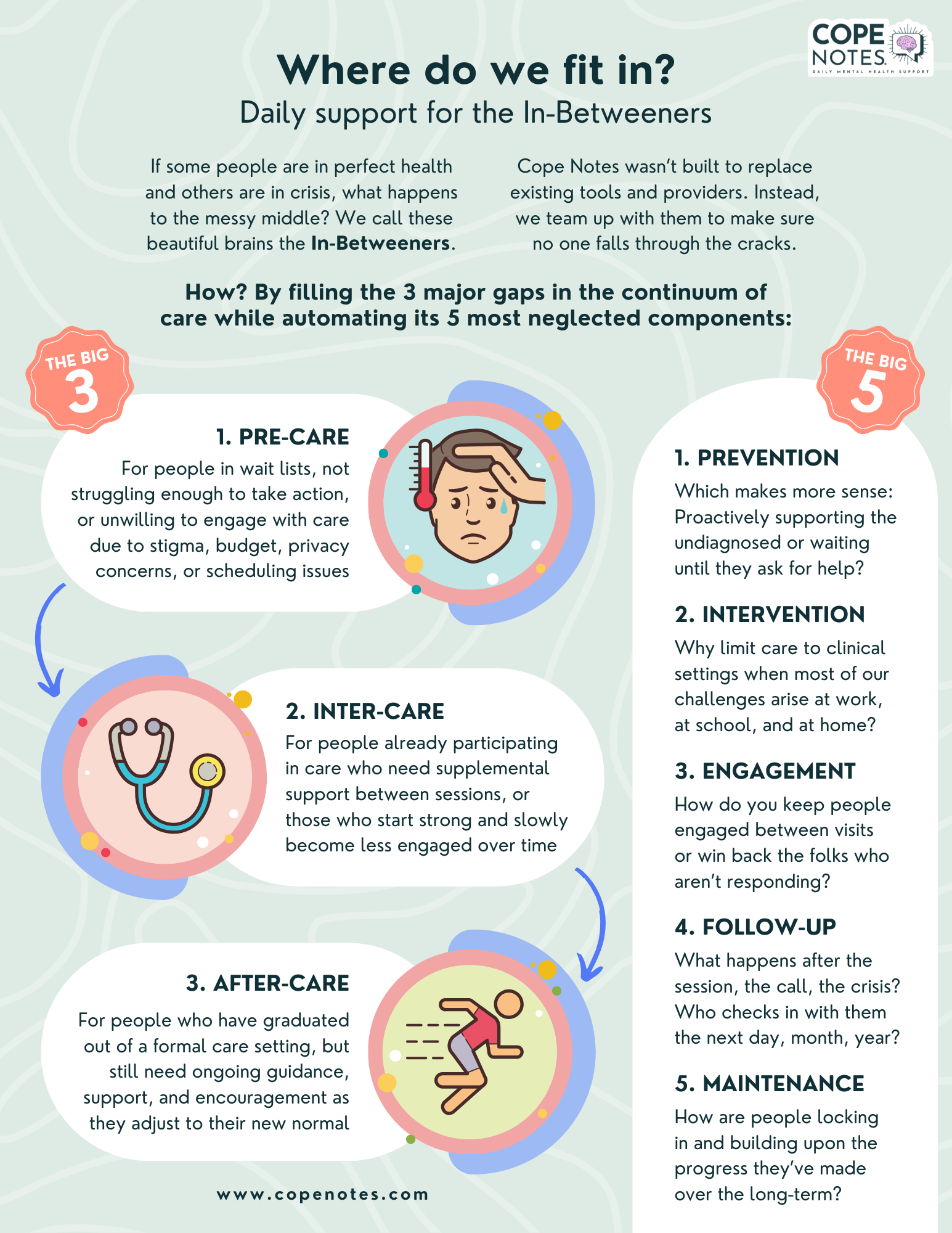 In keeping with federal recommendations, Cope Notes outsources all crisis services to the 988 Lifeline.
